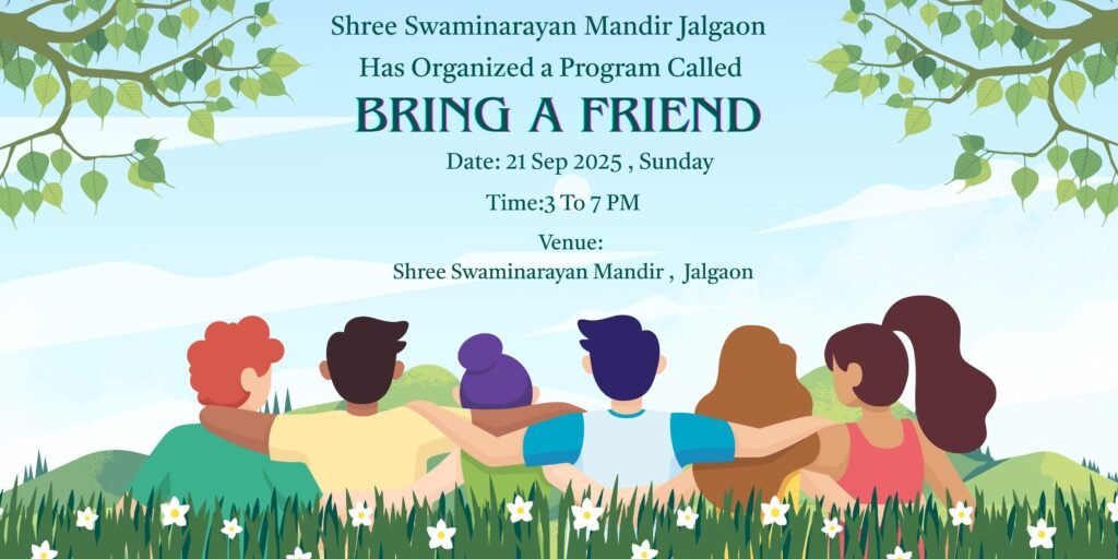 शहरातील टीव्ही टॉवर शेजारील उभारलेले भव्य, नक्षीकामयुक्त आणि सांस्कृतिक-धार्मिक वारशाचे दर्शन घडवणारे श्री स्वामिनारायण मंदिर केवळ उपासना आणि आराधनेचे केंद्र नाही तर भारतीय सनातन धर्माच्या परंपरा, संस्कार आणि आध्यात्मिक ज्ञानाचा प्रसार करणारे एक महत्त्वाचे केंद्र ठरले आहे. अशा मंदिरात नियमितपणे विविध शैक्षणिक, सामाजिक आणि सांस्कृतिक उपक्रम राबवले जात आहेत. त्याचाच एक भाग म्हणून रविवारी, २१ सप्टेंबर रोजी दुपारी ३ ते सायंकाळी ७ या वेळेत “ब्रिंग अ फ्रेंड्स” विशेष उपक्रमाचे आयोजन केले आहे.