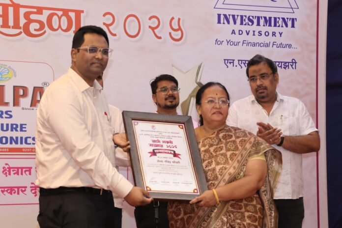 नवरात्रीच्या पार्श्वभूमीवर पंडित मल्टीस्पेशालिटी हॉस्पिटल, एन.एस.ॲडव्हायझरी आणि मू.जे.महाविद्यालय इव्हेंट मॅनेजमेंट विभाग यांच्या संयुक्त उपक्रमात ‘नारी शक्ती सन्मान’ कार्यक्रम नुकताच पार पडला. कार्यक्रमात जळगाव शहरातील कला, सामाजिक, शैक्षणिक, विधी, वैद्यकीय, उद्योजक क्षेत्रातील २५ महिलांना त्यांच्या उल्लेखनीय कार्यासाठी सन्मानित करण्यात आले. कार्यक्रमाद्वारे महिलांच्या सामर्थ्याचा गौरव करण्यात आला. त्यांच्या प्रेरणादायी कार्याचा सन्मान करून समाजात सकारात्मक संदेश पोहचला आहे.