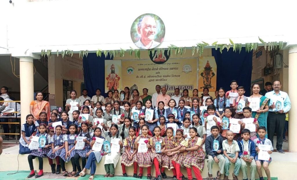 डॉ. अण्णासाहेब जी. डी. बेंडाळे प्रतिष्ठान व के.सी. ई. सोसायटी शालेय विभाग आणि शिक्षणशास्त्र आणि शारिरीक शिक्षणशास्त्र महाविद्यालय जळगाव यांच्या संयुक्त विद्यमाने श्रीमद् भगवतगीता पठण स्पर्धेचे आयोजन करण्यात आले.