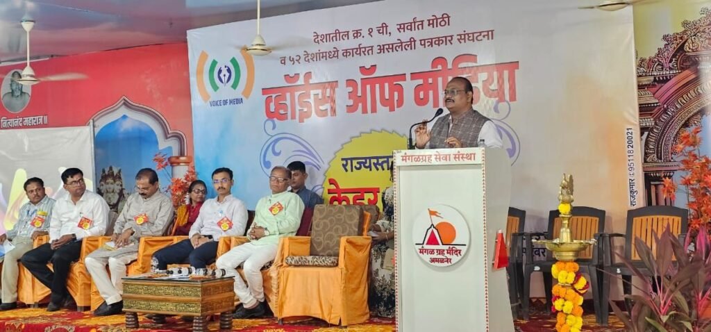 पत्रकार हा समाजाचा कणा आहे. मात्र, आज मीडिया क्षेत्रात वेगाने बदल होत आहेत. डिजिटल, सोशल मीडिया, आंतरराष्ट्रीय पत्रकारिता अशा सगळ्या क्षेत्रात नवे ट्रेंड्स, नवी आव्हाने निर्माण होत आहेत. अशा काळात संघटनाशिवाय पत्रकारांचे प्रश्न सोडविणे अशक्य आहे. आमची लढाई पत्रकारांच्या हक्कासाठी आहे, असे संस्थेचे संस्थापक तथा आंतरराष्ट्रीय अध्यक्ष संदीप काळे यांनी ठामपणे सांगितले. व्हॉईस ऑफ मीडिया आणि व्ही.ओ.एम. इंटरनॅशनल फोरम संस्थांनी एकत्र येऊन पत्रकारांना जगभर जोडण्याचा आणि त्यांचे हक्क सुरक्षित करण्याचा प्रयत्न केला असल्याचे त्यांनी नमूद केले. व्हॉईस ऑफ मीडिया आणि व्ही.ओ.एम. इंटरनॅशनल फोरमचा दोन दिवसीय राज्यस्तरीय केडर कॅम्प अमळनेरच्या मंगलग्रह मंदिर परिसरात मोठ्या उत्साहात पार पडला. पत्रकारांना सशक्त करण्यासाठी, त्यांचे प्रश्न समजून घेण्यासाठी आणि बदलत्या मीडिया परिदृश्यात सज्ज करण्यासाठी हा कॅम्प महत्त्वाचा ठरला. राज्यभरातून सुमारे २५० प्रमुख पदाधिकाऱ्यांनी शिबिरात सहभाग नोंदवून व्हॉईस ऑफ मीडिया पत्रकार संघटनात्मक चळवळीला नवी ऊर्जा दिली.