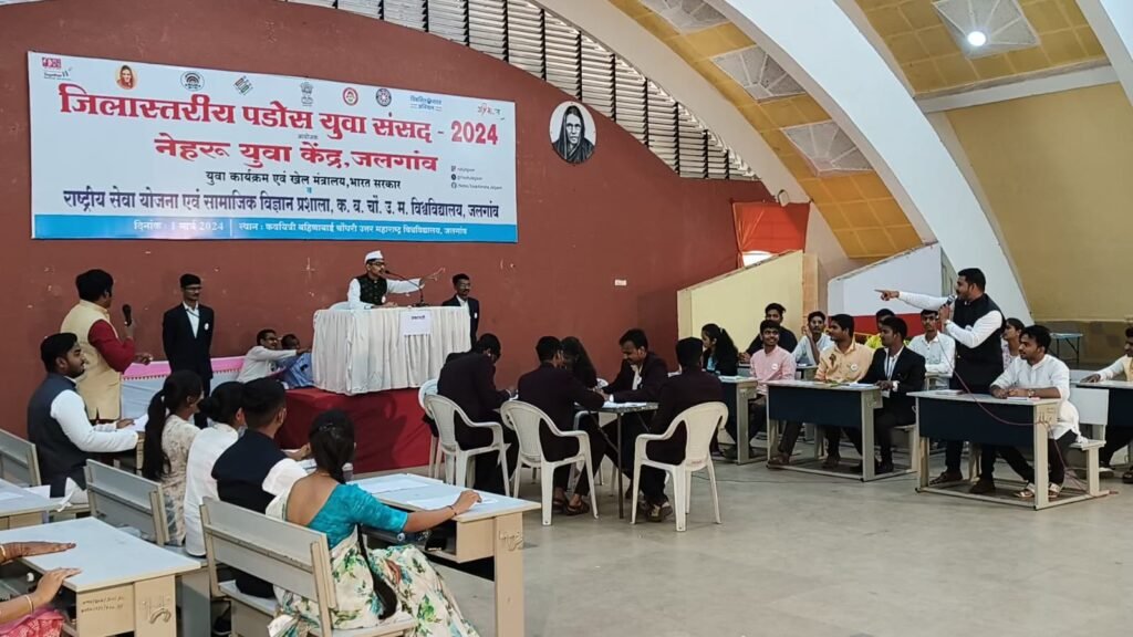नेहरू युवा केंद्र जळगावतर्फे शुक्रवार दि.१ मार्च रोजी कवयित्री बहिणाबाई चौधरी उत्तर महाराष्ट्र विद्यापीठाच्या पदवी प्रदान सभागृहात जिल्हास्तरीय पडोस युवा संसद २०२४ कार्यक्रमाचे आयोजन करण्यात आले होते.