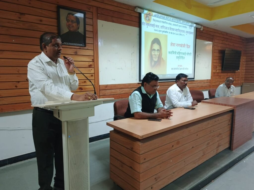 येथील संत मुक्ताबाई कला, वाणिज्य व विज्ञान महाविद्यालयात विद्यार्थी विकास विभाग व राष्ट्रीय सेवा योजनेच्या संयुक्त विद्यमाने थोर कवयित्री बहिणाबाई चौधरी यांच्या पुण्यतिथी निमित्त लेवा गण बोली दिन साजरा करण्यात आला. कवित्री बहिणाबाई चौधरी यांच्या साहित्यावर व जीवन कार्यावर प्रकाश टाकण्यात आला. अध्यक्षस्थानी महाविद्यालयाचे प्राचार्य डॉ. आय. डी. पाटील होते.
