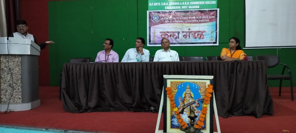 कार्यक्रमाचे प्रमुख वक्ते डॉ. मिलिंद करंबळेकर, अध्यक्ष महाविद्यालयाचे प्राचार्य डॉ. मिलिंद बिल्दिकर यांनी मनोगत व्यक्त करुन मार्गदर्शन केले.यशस्वीतेसाठी कला मंडळाचे सदस्य प्रा. अंकुश जाधव, प्रा.पंकज वाघमारे, प्रा. किशोर पाटील, प्रा. विभा पाटील, किरण निकम, नंदकिशोर लोधे, करण लोधे, प्रणाली जाधव, अर्पिता चव्हाण, चेतन राठोड, मनोज डोंगरे यांनी परिश्रम घेतले. कार्यक्रमासाठी महाविद्यालयातील शिक्षक, शिक्षकेतर कर्मचारी, विद्यार्थी उपस्थित होते. प्रास्ताविक डॉ. पंकजकुमार नन्नवरे, सूत्रसंचालन प्रा. वैशाली पाटील तर आभार डॉ. सुशीलकुमार पवार यांनी मानले.