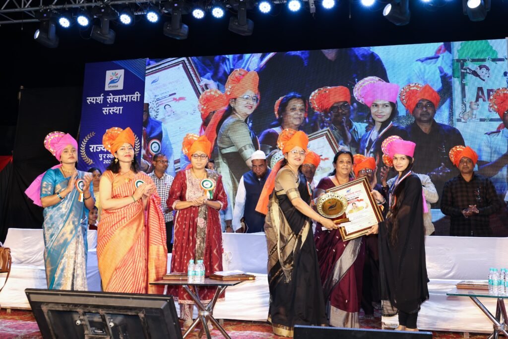 अहमदनगर येथील स्पर्श सेवाभावी संस्थेतर्फे राज्यस्तरीय कलाविष्कार २०२४ प्रथम क्रमांकाच्या पुरस्काराने येथील प्रियंका विजय देवरे हिला नुकतेच सन्मानित करण्यात आले. तिला कथ्थक नृत्यकला व सांस्कृतिक क्षेत्रातील योगदानाबद्दल सन्मानपत्र, शाल, मानाचा फेटा, मेडल, स्मृतीचिन्ह देऊन सन्मानित केले. तिला हा पुरस्कार पद्मश्री स्व.सिंधुताई सपकाळ यांच्या सुकन्या ममता सपकाळ, सिंधुतार्इंचे मानसपुत्र विजय सपकाळ, विधानसभा सदस्य प्राजक्त तानपुरे, शुभांगी पाटील, अध्यक्ष टीचर्स असोसिएशन आदी मान्यवरांच्या हस्ते प्रदान करण्यात आला. तिला मिळालेल्या पुरस्कारामुळे तिने चाळीसगावच्या शिरपेचात मानाचा तुरा रोवला आहे. प्रियंकाने विविध कला सांस्कृतिक कार्यक्रमात परीक्षक म्हणूनही काम पाहिले आहे. तसेच तिला आतापर्यंत राज्यस्तरीय कलार्पण, उमंग, कलानंद कथ्थक नृत्य संस्था बाबाज थिएटर नाशिक, कथ्थक नृत्य स्पर्धा अशा अनेक ठिकाणी सन्मानित केले आहे.
