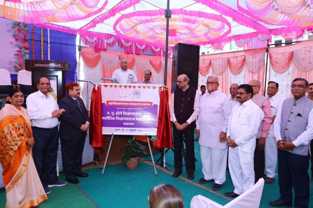 ज्येष्ठ साहित्यिक, कथाकथनकार, नाट्य कलावंत, दिग्दर्शक, सामाजिक कार्यकर्ते प्रा. व. पु. होले हे ग्रेट टिचर आहेत. त्यांचे विविध क्षेत्रातील समाजोपयोगी कार्य, दातृत्च भाव सर्वांना प्रेरणादायी असल्याचे प्रतिपादन कुलगुरू व्ही.एल. माहेश्वरी यांनी केले. खान्देश कॉलेज एज्युकेशन सोसायटीचे शिक्षणशास्त्र आणि शारीरिक शिक्षणशास्त्र महाविद्यालयाचा नामकरण समारंभ गुरुवारी, २२ फेब्रुवारी रोजी दुपारी महाविद्यालयाच्या क्रीडांगणावर कुलगुरू माहेश्वरी यांच्या अध्यक्षतेखाली पार पडला. त्याप्रसंगी ते बोलत होते. महाविद्यालयाचे नामकरण आता ‘व. पु. होले शिक्षणशास्त्र आणि शारीरिक शिक्षणशास्त्र महाविद्यालय’ असे झाले. नामकरण फलकाचे अनावरण उपस्थित मान्यवरांच्या हस्ते करण्यात आले. प्रारंभी ईश स्तवन, स्वागत गीत सारिका गिरासे, पल्लवी पाटील आणि त्यांच्या सहकाऱ्यांनी सादर केले.