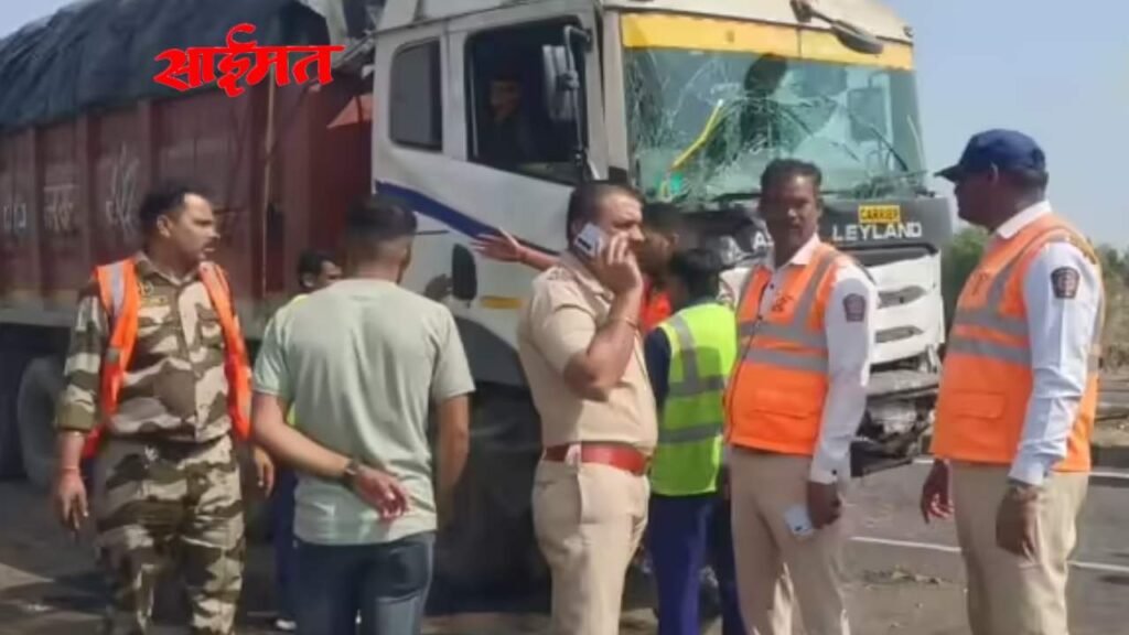 क्रूझर जीप ट्रकला भिडली, टायर फुटल्याने नियंत्रण सुटलं