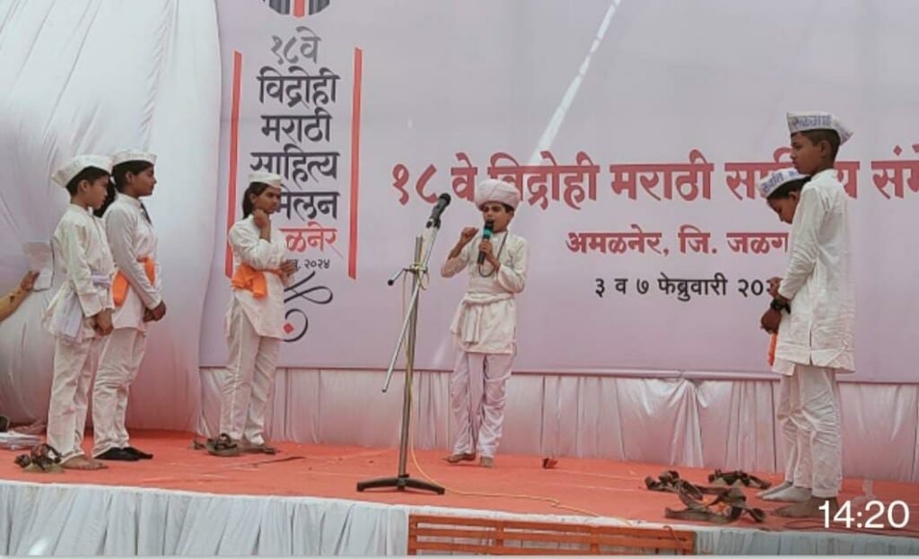 येथील १८ व्या विद्रोही मराठी साहित्य संमेलनाच्या सत्यशोधक मुक्ता साळवे बालमंचावरील बाल कलाकारांनी विद्रोहीच्या मंचावर सादर केलेल्या समूह गीते, नाट्यभिनय, वेशभूषा व प्रबोधन गीतांना उपस्थित रसिकांनी भरभरून दाद दिली. सर्व मुला-मुलींनी सुंदर सादरीकरण केले. नाट्याभिनयात विविध संदेश देणाऱ्या नाटिका पाहून प्रेषक मंत्रमुग्ध होऊन गेले होते. उद्घाटन प्रा.उल्हास पाटील यांच्या हस्ते झाले. अध्यक्षस्थानी एल.जे गावित होते. यावेळी स्वागत शाम पाटील यांनी केले.