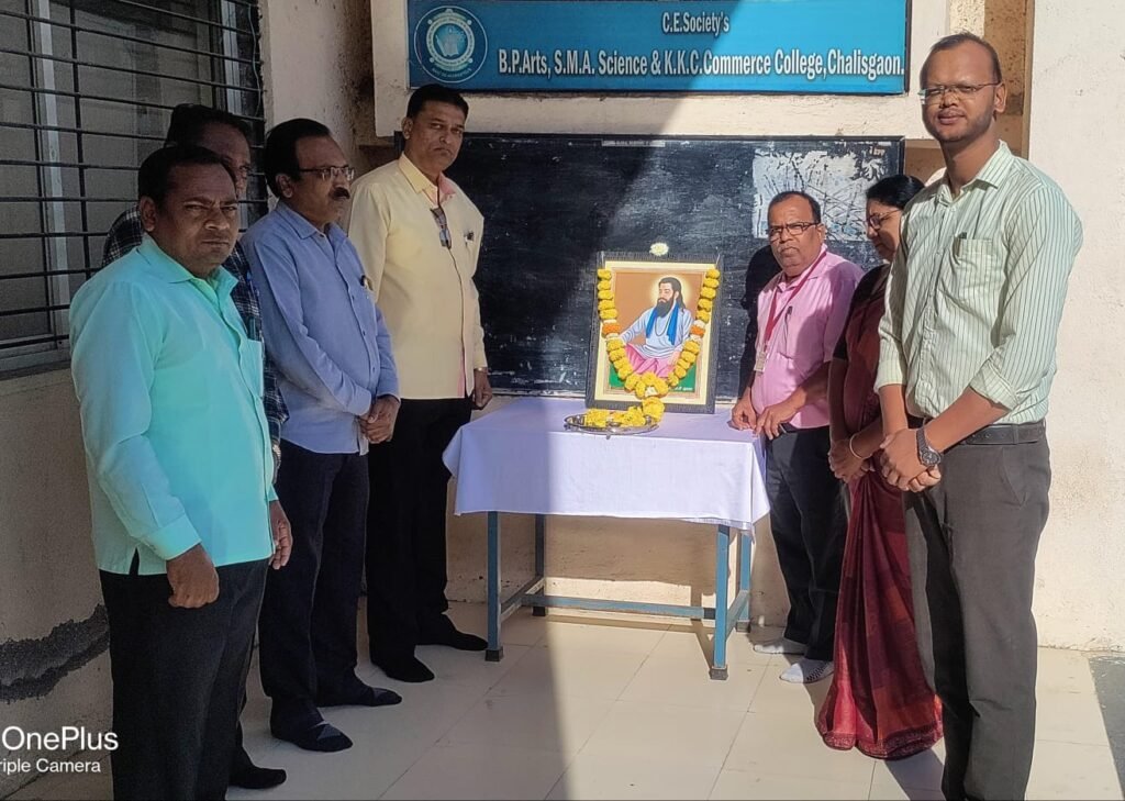 येथील चाळीसगाव एज्युकेशन सोसायटीच्या बी. पी. आर्टस्‌, एस.एम.ए.सायन्स आणि के.के.सी. कॉमर्स आणि के. आर. कोतकर ज्युनिअर कॉलेज येथे संत गाडगेबाबा आणि संत रोहिदास महाराज यांच्या जयंतीनिमित्त अभिवादन करण्यात आले. अध्यक्षस्थानी महाविद्यालयाचे प्राचार्य डॉ. मिलिंद व्ही. बिल्दीकर होते. यावेळी उपप्राचार्य डॉ. ए. व्ही. काटे, उपप्राचार्य डी. एल. वसईकर, उपप्राचार्य डॉ. के.एस. खापर्डे, प्रा. ए. आर. मगर, उत्सव समिती प्रमुख प्रा.अंकुश जाधव, प्रा. नयना पाटील, प्रा. दीपक पाटील यांच्या हस्ते प्रतिमा पूजन करुन माल्यार्पण करण्यात आले.