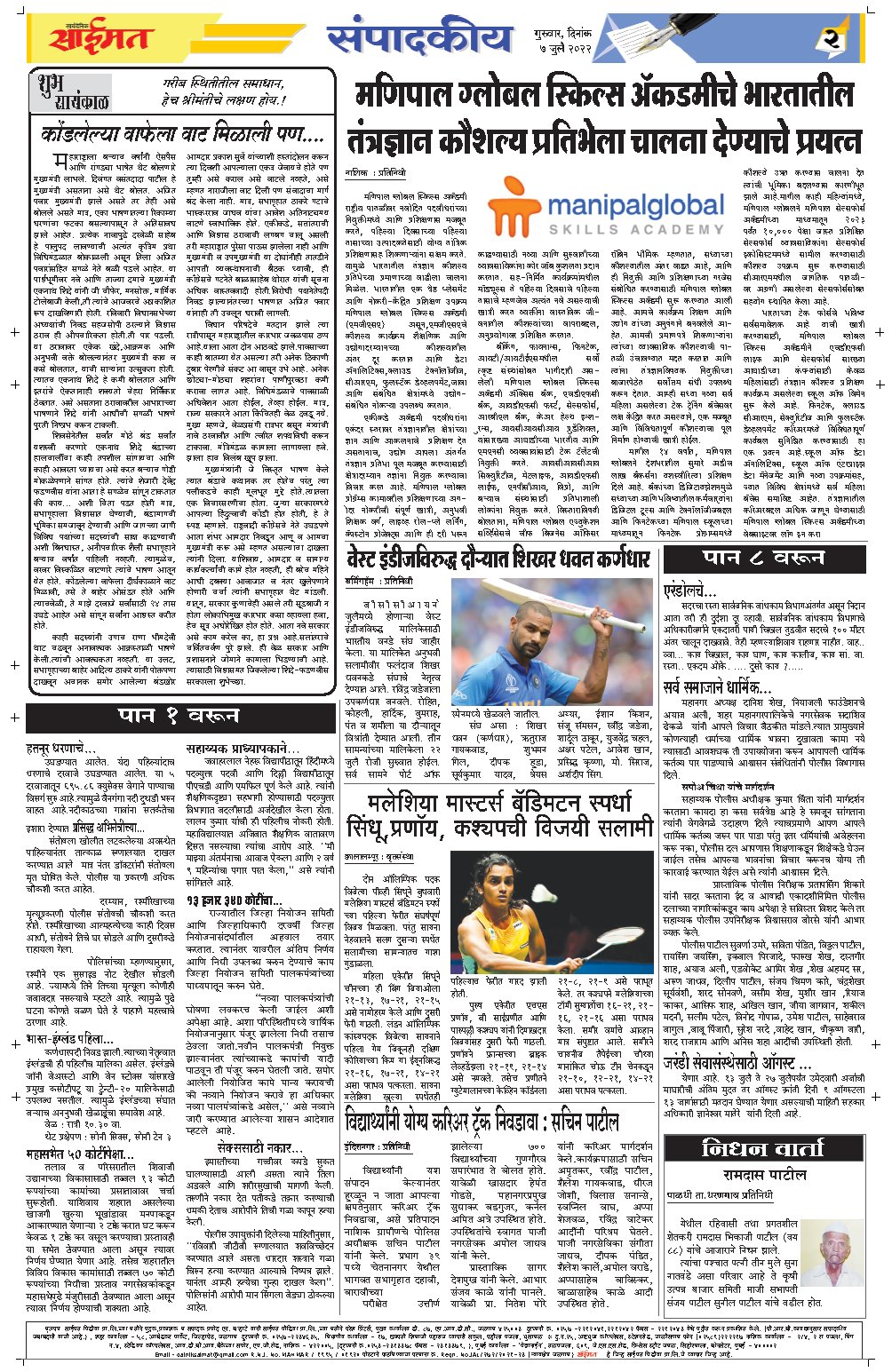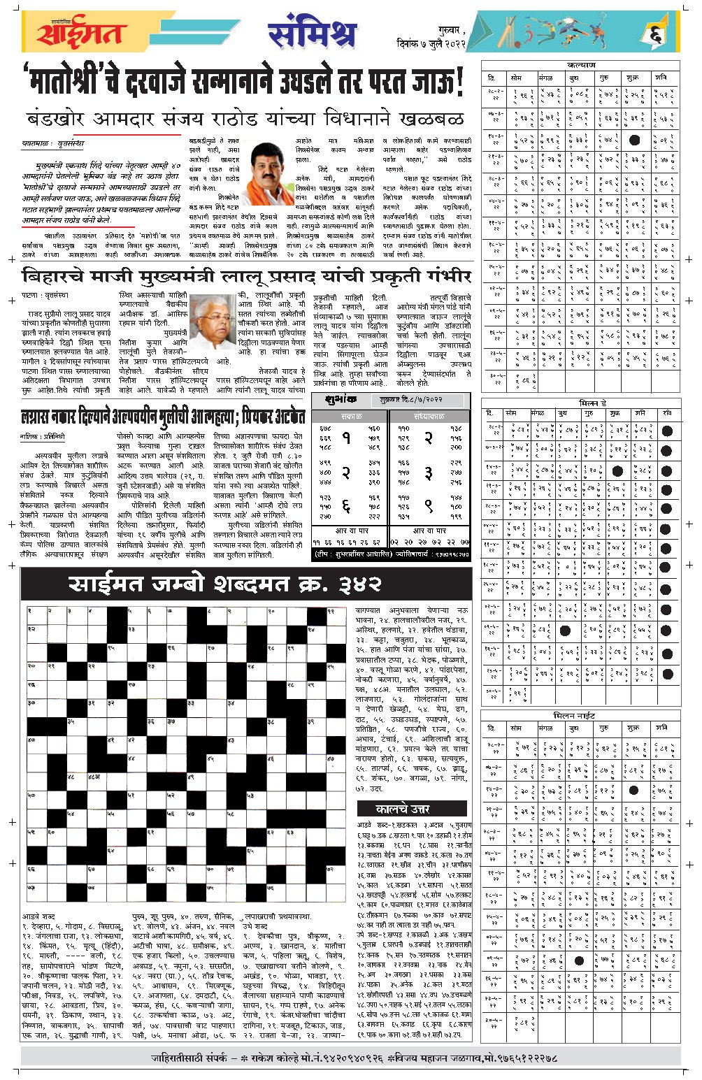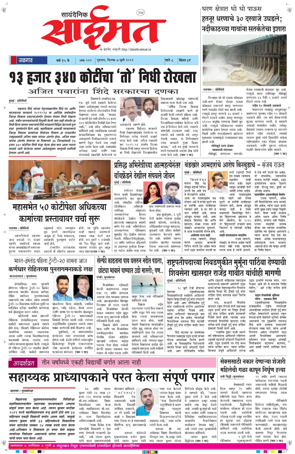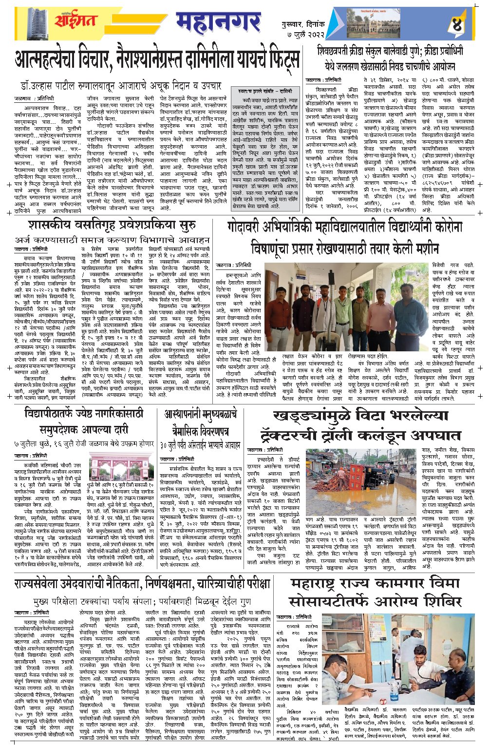 जळगाव सायंदैनिक साईमत ई – पेपर दि ७ जुलै २०२२ गुरुवार By Saimat - July 7, 2022 0 36 FacebookTwitterPinterestWhatsApp
