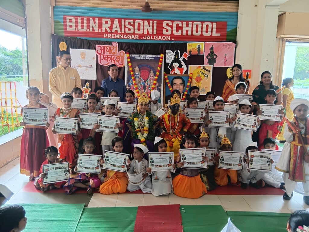 शहरातील प्रेमनगरातील बी.यू.एन. रायसोनी स्कूलमध्ये आषाढी एकादशीनिमित्त विविध धार्मिक व सांस्कृतिक कार्यक्रमांचे आयोजन केले होते. त्यात शाळेच्या सर्व विद्यार्थ्यांनी पारंपरिक वारकरी वेषभूषेत उत्स्फूर्त सहभाग घेतला. सुरुवातीला पालक संघाच्या सदस्य श्वेता लढ्ढा, लतिका राजपूत यांच्या हस्ते विठोबा, सरस्वती देवीच्या प्रतिमेचे पूजन केले. त्यानंतर दुसरीच्या विद्यार्थ्यांनी आयोजित केलेल्या फॅन्सी ड्रेस स्पर्धेत विठोबा, रखुमाई, संत तुकाराम, संत ज्ञानेश्वर, वारकऱ्यांचे रूप परिधान करून सादरीकरण केले.