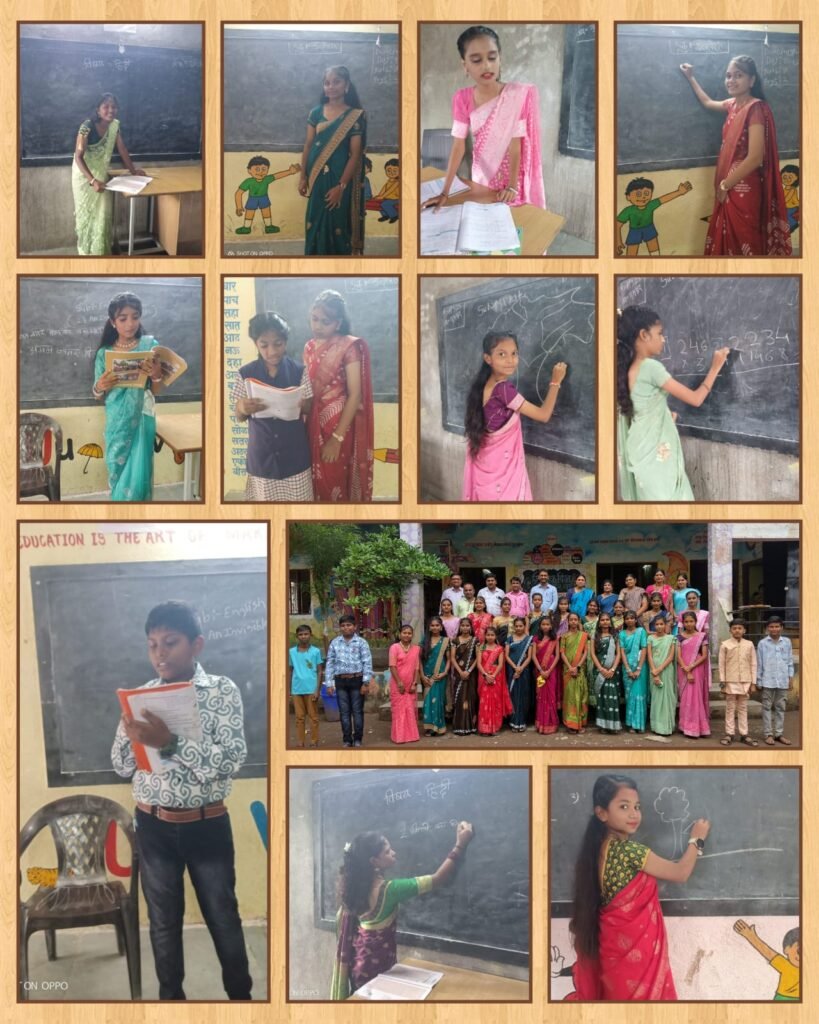 विद्यार्थ्यांकडून शाळेत ज्ञार्नाजनाचा अनुभव घेत शिक्षकांप्रती कृतज्ञता व्यक्त