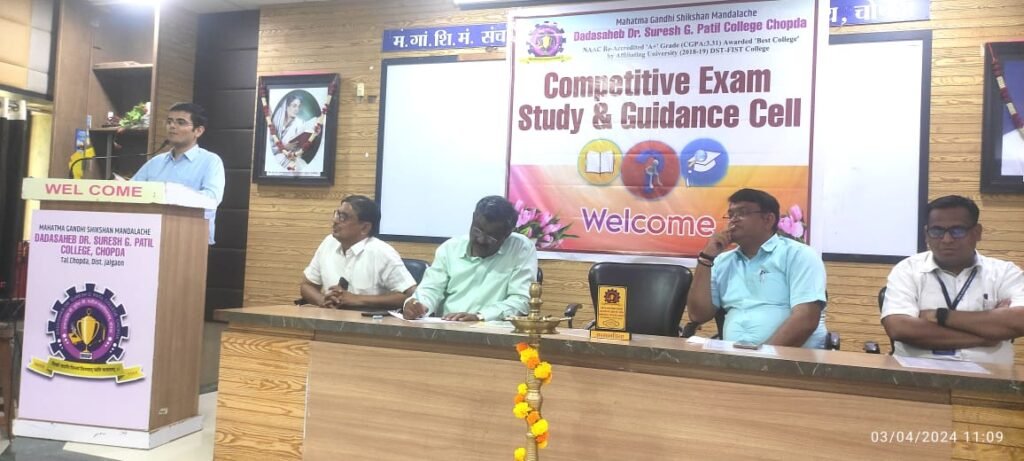 विद्यार्थ्यांनी स्पर्धा परीक्षेची तयारी सुरू करण्यापूर्वी परीक्षेचा अभ्यासक्रम काळजीपूर्वक बघावा. मागील परीक्षांच्या प्रश्‍न पत्रिका बघून उत्तर पत्रिका लेखनाचा सराव करावा. त्याचबरोबर बहुविध विषयांचे पुस्तके, नियतकालिक तसेच वृत्तपत्रे यांचे नियमित वाचन करणे गरजेचे आहे. स्पर्धा परीक्षेत यश प्राप्त करण्यासाठी विद्यार्थ्यांची आंतरिक प्रेरणा अत्यंत महत्त्वाची आहे. त्यासाठी कौटुंबिक पाठबळ मोलाचे ठरते. स्पर्धा परीक्षेसाठी वेळ आणि अभ्यासाचे सुसूत्र नियोजन, अभ्यासातील सातत्य, जिद्द, चिकाटी व कठोर परिश्रमांच्या बळावर निश्‍चितच यश मिळत असल्याचे प्रतिपादन चोपडा नगर परिषदेचे मुख्याधिकारी अर्पित चौहान यांनी केले. चोपडा येथील महात्मा गांधी शिक्षण मंडळ संचलित दादासाहेब डॉ. सुरेश जी. पाटील महाविद्यालयातील स्पर्धा परीक्षा मार्गदर्शन व अभ्यासिका केंद्र तसेच करियर कट्टा यांच्या संयुक्त विद्यमाने ‘स्पर्धा परीक्षेची तयारी कशी करावी’ विषयावरील आयोजित मार्गदर्शनपर व्याख्यानात ते बोलत होते. अध्यक्षस्थानी महाविद्यालयाचे प्राचार्य डॉ. डी. ए. सूर्यवंशी होते.