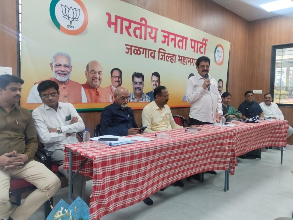 भाजपाच्या नूतन कार्यालयात अर्थात जीएम फाउंडेशन येथे शुक्रवारी, १२ सप्टेंबर रोजी दुपारी जळगाव जिल्हा महानगराची महत्त्वपूर्ण बैठक घेण्यात आली. बैठकीत १७ सप्टेंबर रोजी पंतप्रधान नरेंद्र मोदी यांच्या वाढदिवसानिमित्त १७ सप्टेंबर ते २ ऑक्टोबर दरम्यान सेवा पंधरवाडा कार्यक्रम घेण्याचे नियोजन केले आहे. सेवा पंधरवड्यात घेण्यात येणाऱ्या वेगवेगळ्या कार्यक्रमाच्या समिती याठिकाणी जाहीर करण्यात आली. बैठकीला आ. सुरेश भोळे (राजूमामा), महानगर जिल्हाध्यक्ष दीपक सूर्यवंशी, सेवा पंधरवडा संयोजक विजय वानखेडे, उदय भालेराव यांनी मार्गदर्शन केले.