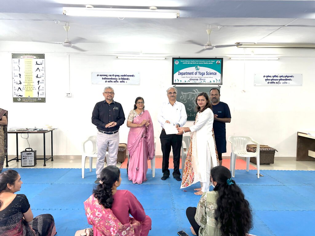कार्यक्रमात विद्यार्थिनी प्रिया चौधरी, अनिता पाटील यांनी मनोगत व्यक्त केले. अमर हटकर यांनी सेट परीक्षेबाबत आणि त्याच्या फायद्यांबाबत माहिती दिली. त्यानंतर एकनाथ नन्नवरे यांनी शिक्षणाच्या अडचणींवर मात करून शिक्षकांच्या मार्गदर्शनाने उच्च पद गाठल्याबाबत अनुभव सांगितला. कार्यक्रमाचे प्रमुख पाहुणे डॉ. विनोद पाटील यांनी विद्यार्थ्यांना मेहनत, सातत्य आणि उच्च ध्येय गाठण्याविषयी मार्गदर्शन केले. अध्यक्षीय मनोगतात डॉ. मनीषा इंदाणी यांनी सर्व उत्तीर्ण विद्यार्थ्यांचे अभिनंदन करुन निरोगी जीवनासाठी योगाचे महत्त्व अधोरेखित केले.