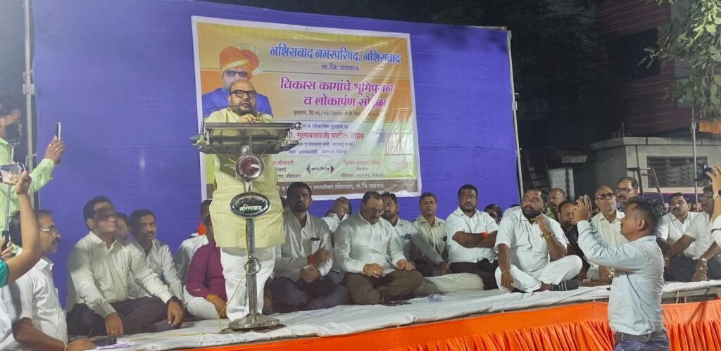 नशिराबादला कोट्यवधीची कामे कार्यकर्त्यांसह ग्रामस्थांची भक्कम साथ यामुळेच सर्वसमावेशक विकास होत आहे. मतदार हाच माझा समाज असून विकास हेच माझे ध्येय आहे. एकीकडे कामे सुरू असतांना तुम्ही विरोधाला विरोध म्हणून कितीही टिका करा; मी विकासकामे करत राहणार असून टिकेला विकासकामातून उत्तर देत आहे. ग्रामविकासात विघ्न आणणाऱ्यांना झूगारून विकास कामे करीत असून विकास कार्यात खोडा घालणाऱ्यांना जनता धडा शिकविल्या शिवाय राहणार नाही. 57 कोटीची पाणी योजना मंजूर झाली असून पाण्याचे आरक्षणावरील शिक्कामोर्तब झाला आहे. त्याचा जीआर सुद्धा याप्रसंगी दाखवण्यात आला. नाशिराबादाचा प्रत्येक माणूस हा “आपला माणूस” असल्याने गावाच्या सर्वांगीण विकासासाठी निधी कमी पडू देणार नाही. लवकरच 70 कोटींच्याभुयारी गटारीचा प्रस्तावाला मान्यता मिळणार असून स्वच्छ व सुंदर माझे नशिराबाद बनविण्याचे स्वप्न लवकरच साकार होणार असल्याची ग्वाही पाणीपुरवठा व स्वच्छता मंत्री तथा पालकमंत्री गुलाबराव पाटील यांनी नशिराबाद करांना दिली. ते बस स्थानक चौकात विविध विकास कामांच्या लोकार्पण, भूमिपूजन व गृहपयोगी भांडे संच वाटप प्रसंगी बोलत होते.