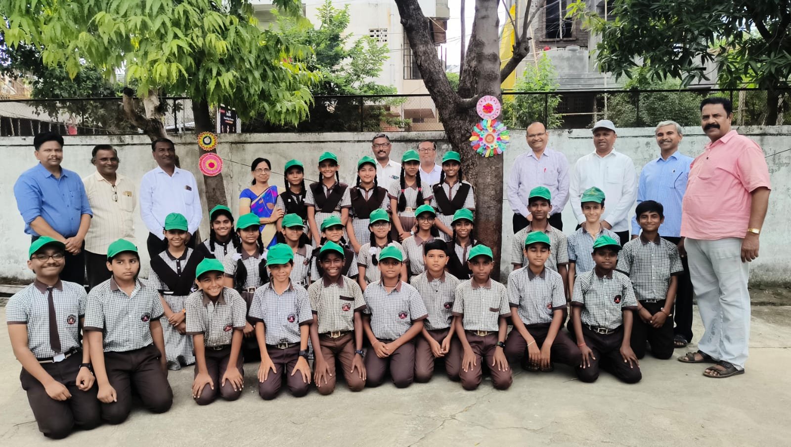 Bhagirath School : भगीरथ शाळेतील हरित सेनेच्या विद्यार्थ्यांनी झाडांना बांधल्या ‘राख्या’