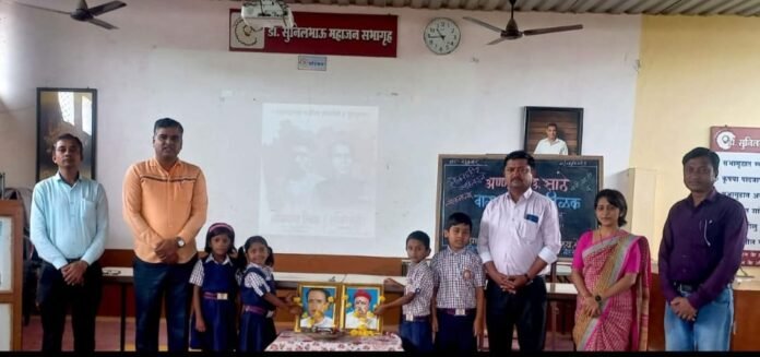 याप्रसंगी विद्यालयातील विद्यार्थी तृष्णी राठोड, भार्गवी पाटील, शितल हटकर, हर्षदा पाटील, चेतन सोनार, रितेश लोहार, राशी धनपाल ह्या विद्यार्थ्यांनी भाषणे दिली. यावेळी मुख्याध्यापक चंद्रकांत पाटील यांच्यासह शिक्षक ज्ञानचंद बऱ्हाटे, केतन बऱ्हाटे, संदीप खंडारे आदी उपस्थित होते. यशस्वीतेसाठी सर्वांनी परिश्रम घेतले.सूत्रसंचालन तिसरीची विद्यार्थिनी करुणा सपकाळे तर चवथीचा विद्यार्थी चेतन सोनार याने आभार मानले.