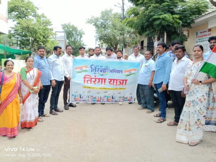पिंप्राळा उपनगरातील भाजप महाराणा प्रताप मंडळातर्फे मंगळवारी सकाळी दहा वाजेला ‘हर घर तिरंगा’ अभियानांतर्गत मंडळाध्यक्ष अतुल बारी, महिला मोर्चाच्या अध्यक्षा नितू परदेशी, माजी नगरसेविका शोभा बारी, रेखा कुलकर्णी यांच्या नेतृत्वाखाली मुख्य शिवस्मारकापासून पदयात्रा काढण्यात आली.
