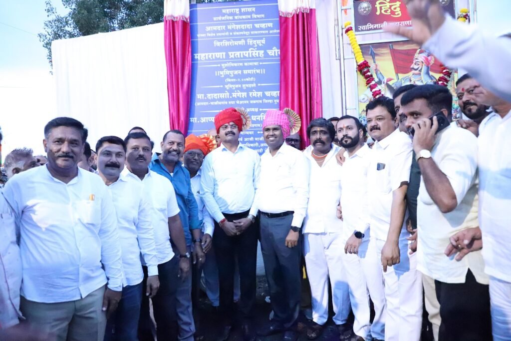 पूर्वी भूमिपूजन व्हायचे, मात्र कामे होत नव्हती. MH 52 उपप्रादेशिक परिवहन कार्यालय, मध्यवर्ती प्रशासकीय इमारत अशी अशक्य वाटणारी कामे प्रत्यक्ष मार्गी लावता आली. भूमिपूजन करून अवघ्या 40 दिवसात वीरशिरोमणी हिंदूसुरू महाराणा प्रतापसिंह चौकाचे सुशोभीकरण पूर्ण करणार आहे. येत्या एक वर्षात याच ठिकाणी अश्वारूढ पुतळा उभा करणार आहे. केलेला कार्यक्रम हा वीरशिरोमणी हिंदूसूर्य महाराणा प्रतापसिंह यांच्या व समाजाच्या प्रती असलेली ही छोटीशी सेवा असून ती तालुक्याच्या चरणी अर्पण करतो, असे आ.मंगेश चव्हाण यांनी सांगितले.