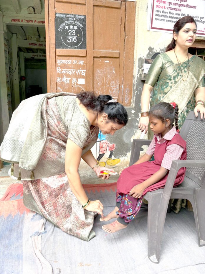 Worship of virgins ; भोळे शाळेत कुमारीकांचा पूजन सोहळा